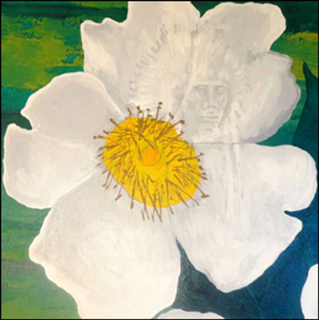 This painting was inspired by the state flower of Georgia, the Cherokee Rose. If you look closely within the pedals, you will find a surprise that honors the legacy of the Cherokee people.