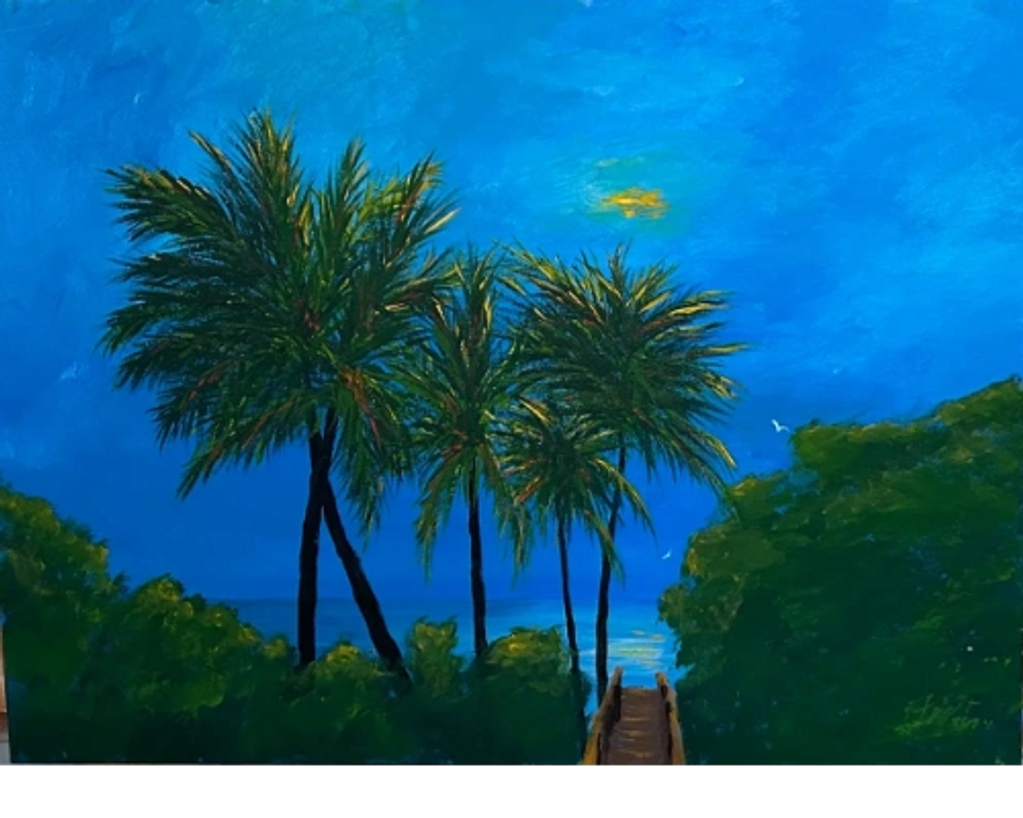 This painting illustrates the warm glow of the moonlight over the beaches of St. George Island, FL.