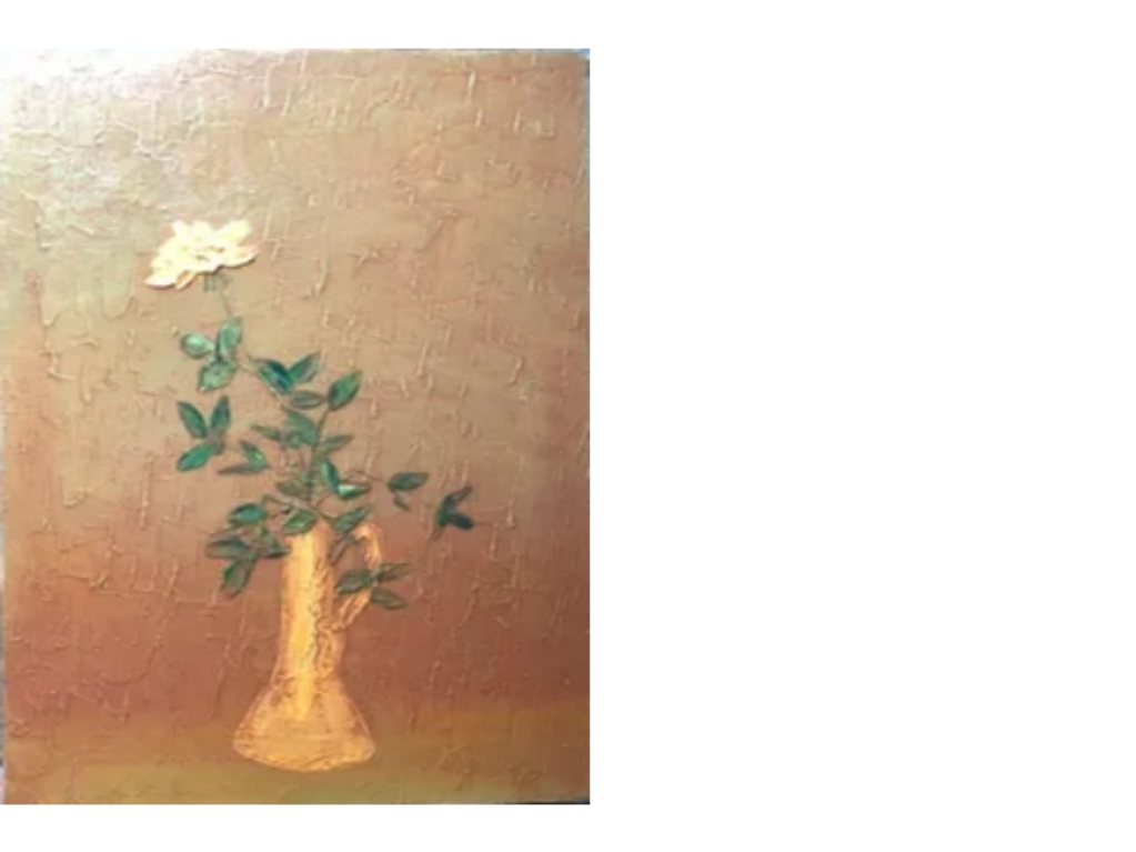 This painting was one of John's early paintings and depicts the serene beauty of a yellow rose stretching towards the sunlight.